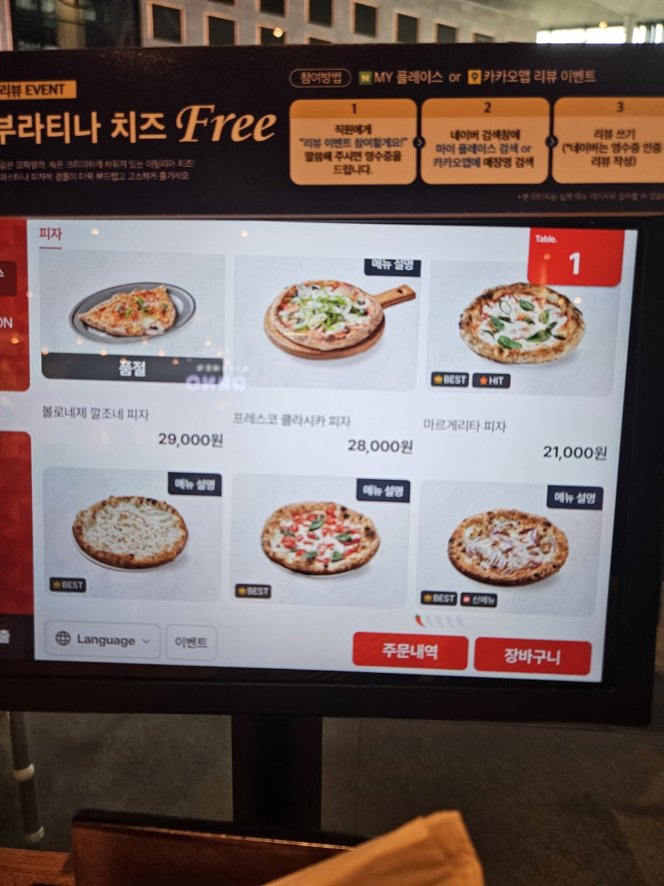 (화덕피자/ 파스타/ 샐러드 등등)